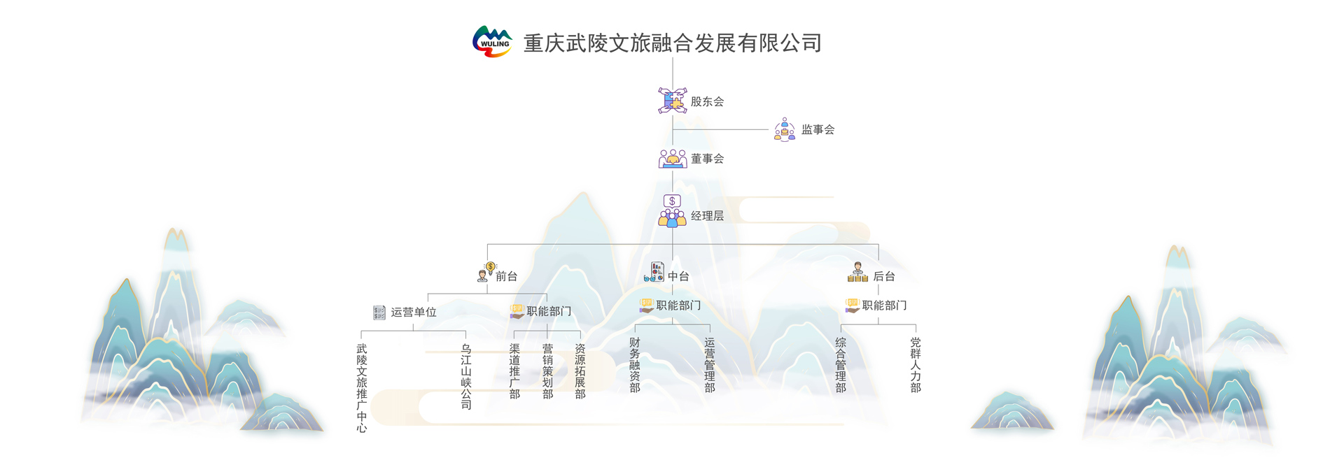 為持續(xù)推進(jìn)國(guó)務(wù)院同意印發(fā)的《武陵山片區(qū)區(qū)域發(fā)展與扶貧攻堅(jiān)規(guī)劃》實(shí)施,切實(shí)貫徹重慶市委市政府“一區(qū)兩群”協(xié)調(diào)發(fā)展戰(zhàn)略,促進(jìn)鞏固脫貧攻堅(jiān)成果與鄉(xiāng)村振興的有效銜接,經(jīng)武陵山文旅發(fā)展聯(lián)盟的積極努力,在重慶市委市政府的支持下,在市委宣傳部、市文化旅游委等部門(mén)的指導(dǎo)下,于2021年5月,由重慶旅游投資集團(tuán)有限公司、重慶文化產(chǎn)業(yè)投資集團(tuán)有限公司、重慶發(fā)展投資有限公司共同出資組建了重慶武陵文旅公司(現(xiàn)為重慶文旅集團(tuán)絕對(duì)控股),注冊(cè)資本金2億元,業(yè)務(wù)范圍包括景區(qū)游覽管理、休閑農(nóng)業(yè)和鄉(xiāng)村旅游資源的開(kāi)發(fā)經(jīng)營(yíng)、旅游開(kāi)發(fā)項(xiàng)目策劃咨詢等70余項(xiàng)。